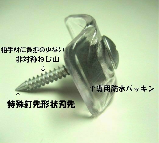 鉄板小波、ポリカ波板など波板取り付け用ビス。強力固定、専用防水パッキン付きで、波板を強力取り付け!座金はポリカクリアーとポリカブロンズの2種類。木下地用は厚み1.5ミリまでのアルミ下地にも使用可能です